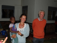 Letitia hat inzwischen einen tollen Empfang vorbereitet. Nachbarn und Freunde sind da, es wird gekocht, getrunken und gefeiert. Die Kinder sind überglücklich und auch die Eltern der Batwa-Kinder schlagen sich den Bauch mit Matoke (Kochbananenmus), Plau (eine Art Reisfleisch), Bratkartoffeln, Fisolen und einem Eintopf aus Rindfleisch und Hühnchen voll. Ich bleibe eine Weile bei den Frauen in der Küche, die einen Riesenspaß dabei haben mir die Rezepte zu erklären, welche Ingrediezien verwendet werden, wie hüftschwingend Matoke gewalkt und geknetet wird. Dafür bin ich auch die erste die kosten darf und werde genau beobachtet, ob es mir wirklich schmeckt. Da tut es und sie sind begeistert und machen Späße. Irgendwer hat eine Musikanlage gebracht, also wird natürlich auch getanzt und gesungen was das Zeug hält – aufregen tut sich über den Lärm keiner. Eh klar die Nachbarn sind ja alle da